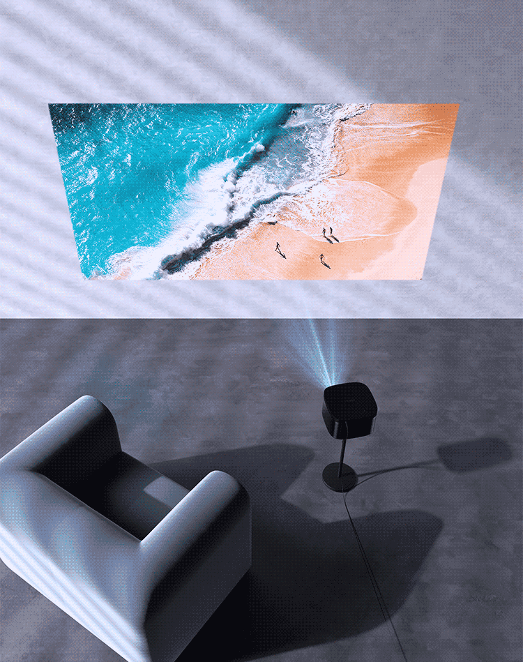 采用4个高灵敏传感器组成的麦克风阵列,配合抗强噪和唤醒技术,能准确的定位声源,看视频,一句话就可以解决,简单方便;产品支持四向自动校正,无论怎么样放置,都可以投射方正画面;产品还采用了漫反射原理,眼部不易疲劳,呵护视力。