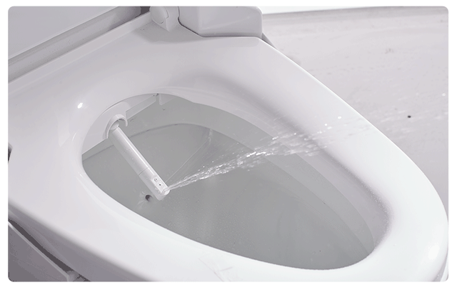 第三步智能马桶盖全自动打开,应用完后,完成臀部清理或女性清洗,暖风烘干,再到全自动冲水就完成了应用的整个过程。