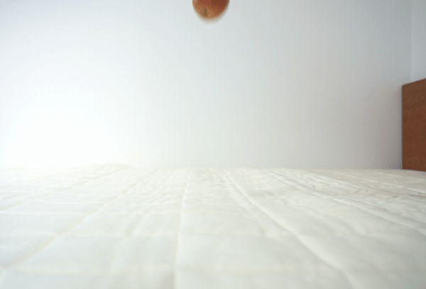 第二下弹跳高度明显的降低,说明继初次的弹力反馈后,床垫还有非常不错的缓震效果,面对大冲击后会进行缓冲,带给后续的一种包裹感。完全不像弹簧那种反复的回弹,进而影响睡眠体验。