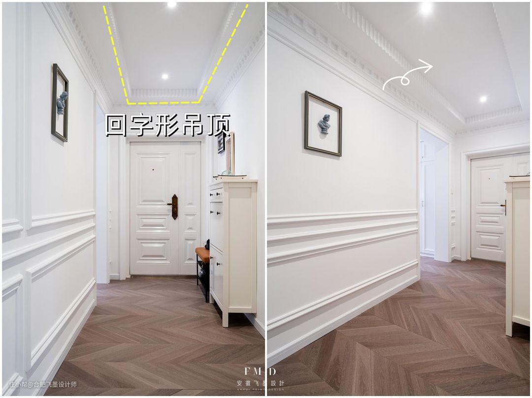 客餐厅之间的过道,也可以参照这种回字形吊顶▼