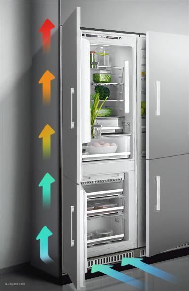 原理是外置冷凝器散热板在背面,多用于嵌入式冰箱。由于能够大面积接触到空气,其散热效率自然更高。一般散热温度能够达到30°~50°左右,有效增加冰箱和橱柜的使用寿命。