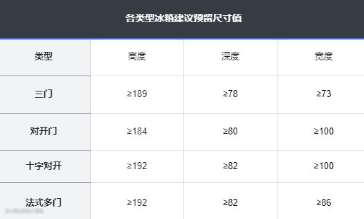 这里建议大家在装修橱柜或家具前事先确定好冰箱的尺寸,再由冰箱尺寸确定橱柜或家具尺寸,这样就不用担心后期冰箱尺寸的问题。