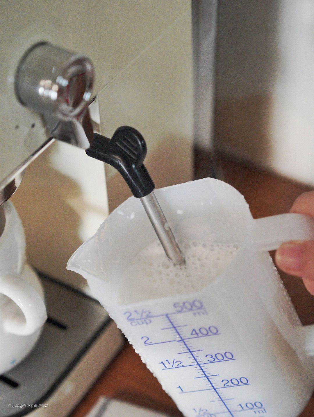 另外提到拉花就不得不说它侧面的蒸汽管了,轻轻一拧,就可以释放出强劲干燥的蒸汽,轻松打出咖啡店同款的绵密奶泡,即便是手残党,在如此优质的先天条件面前,也很难拉花失败吧?