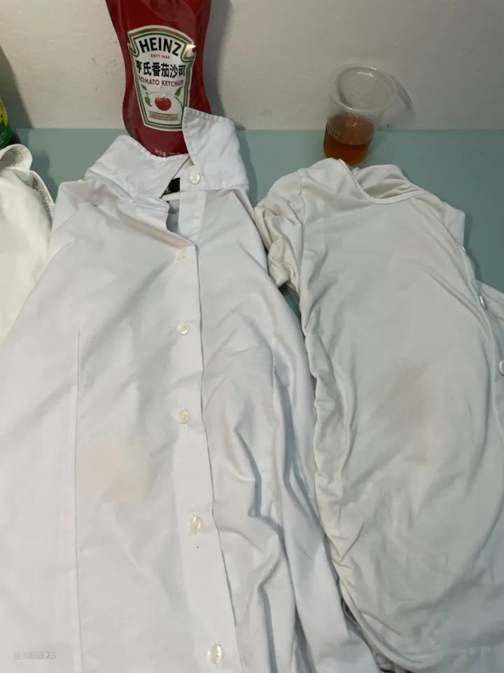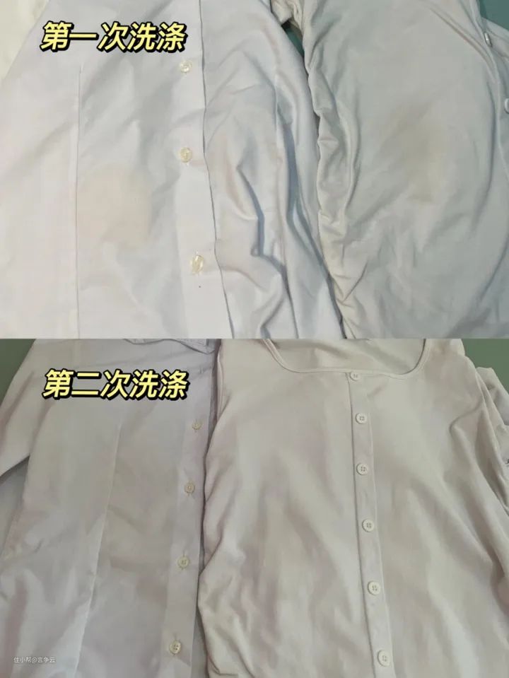 为了更进一步看看是否能把残留的污渍洗干净,我又把有番茄渍和茶渍残留的两件衣服丢进洗衣机里,再选择净渍洗。洗完的时候都已经十一点了,我就把衣服放烘干机里烘,自己睡觉去了(原谅我真的不能熬夜呀),等第二天早上醒来,我从烘干机里拿出衣服,一起来看下两次洗涤效果的对比吧。