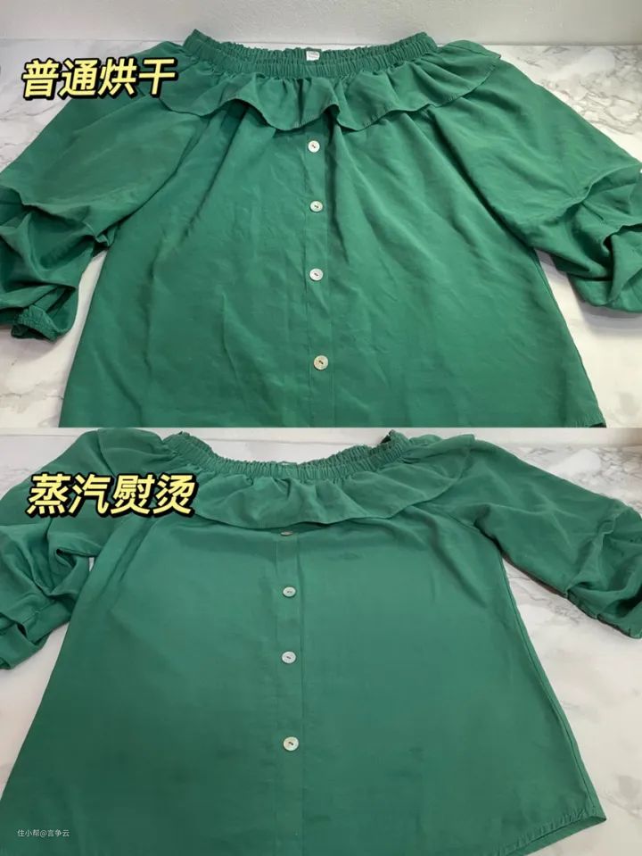19分钟之后烘干结束,再看看这次的衬衫,明显比没有蒸汽护理的衬衫除皱效果要更好,效果堪比挂烫机熨烫出来的。