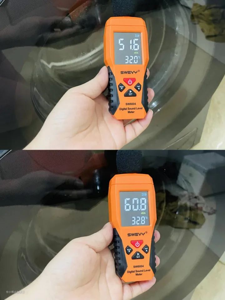 可以说,这两个分贝数值还是很小的,刚好我家洗衣机就放在房间外面,房间门隔音也比较差的。我试着在洗衣机工作的时候关上房间门,我是完全感觉不到有洗衣机在洗衣服的。