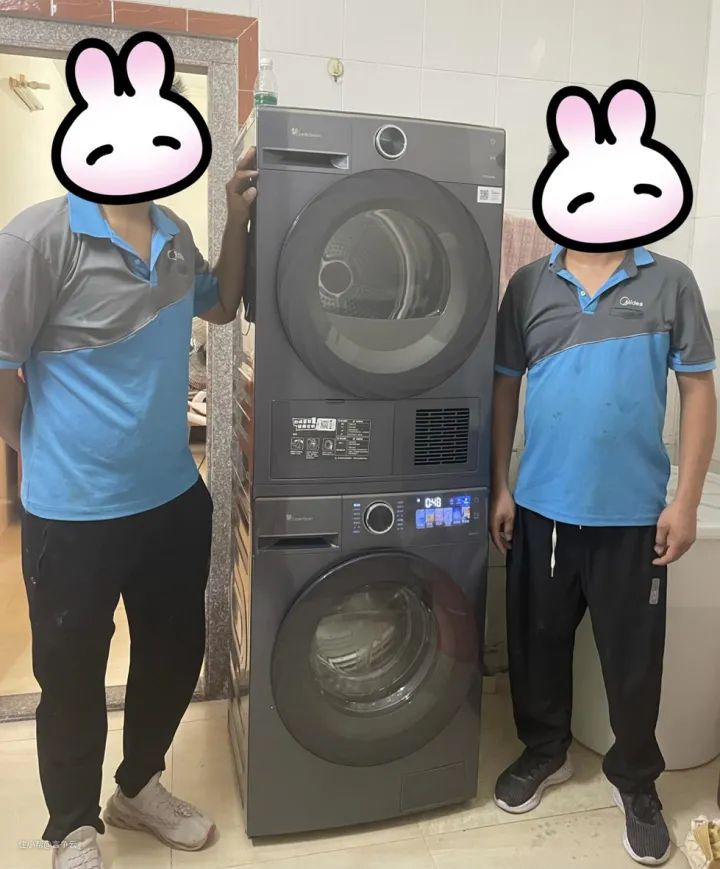 这是安装完的洗烘套装,还有师傅的合照,大家可以看看整体效果,挺不错的。