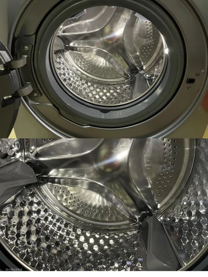 洗衣机和烘干机的容量都是10kg,小天鹅相比其他款,内筒直径更大,深度也变薄,方便投放衣物和拿取衣物,而且空间宽敞,衣物能够在里面足够舒展,厚重大件也能洗/烘得干净。