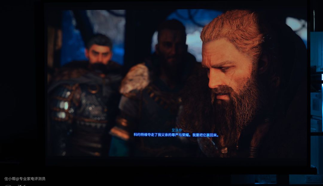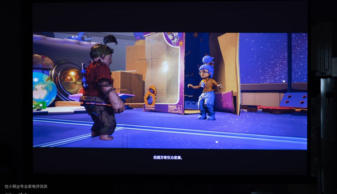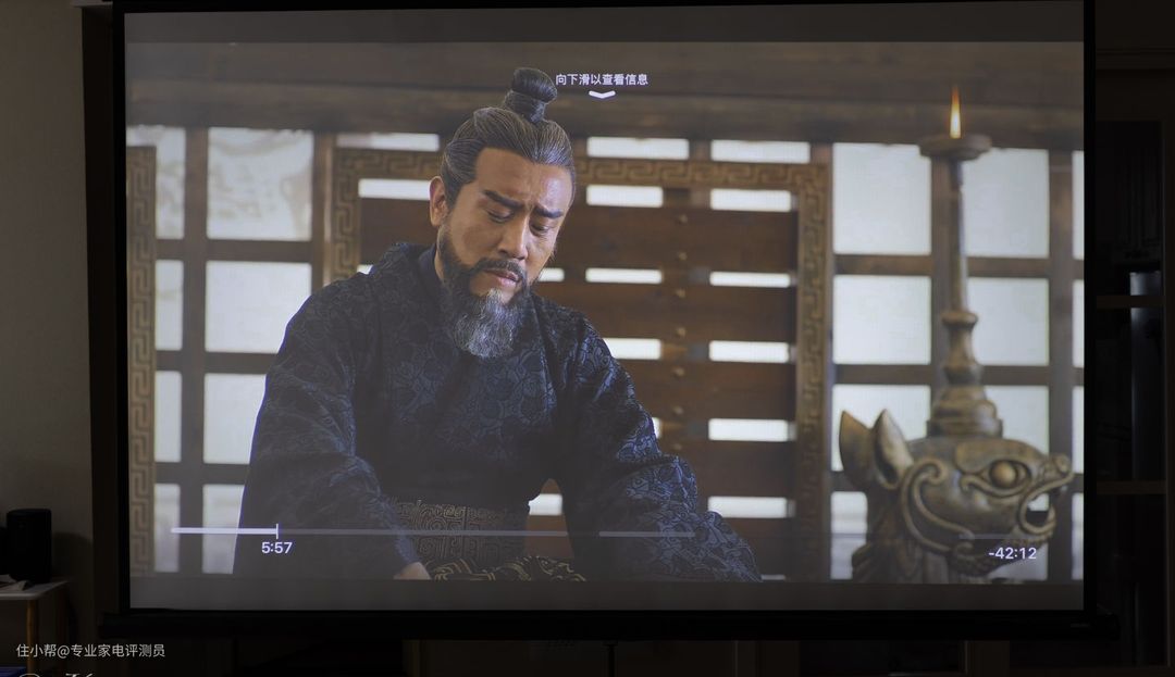 在平均亮度偏低的⾼品质⽚源⾥,呈现效果不及暗光环境,幕布的灰边是⾁眼可⻅的,不过这种呈现效果依然是超出我预期的,整体表现是不错的。