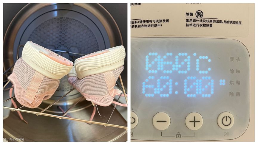 值得一提的是,木卫C1还能用来烘干鞋子,不过,买了这么久,我就烘过一次运动鞋,没有发现脱胶,操作比较简单,把附送的烘鞋架放进烘干机,选择烘鞋模式就可以。