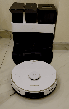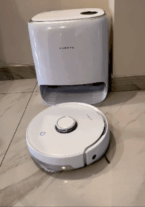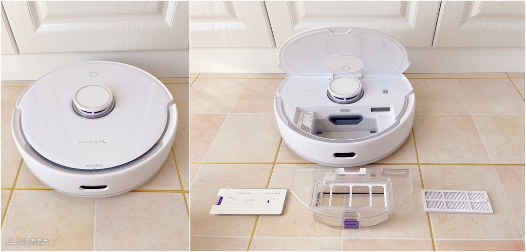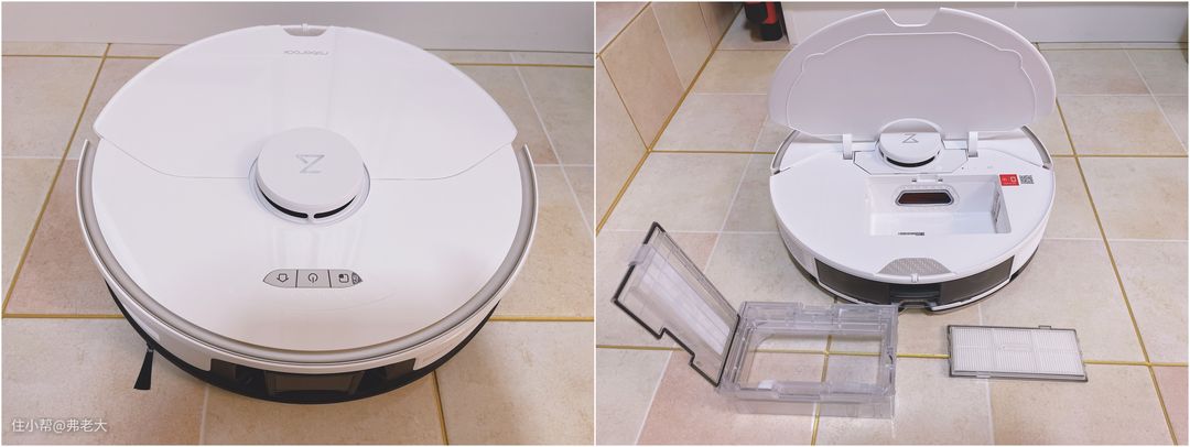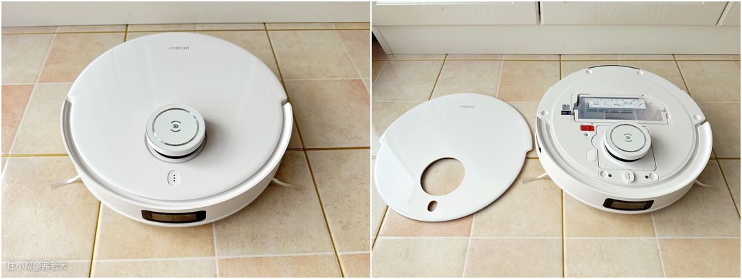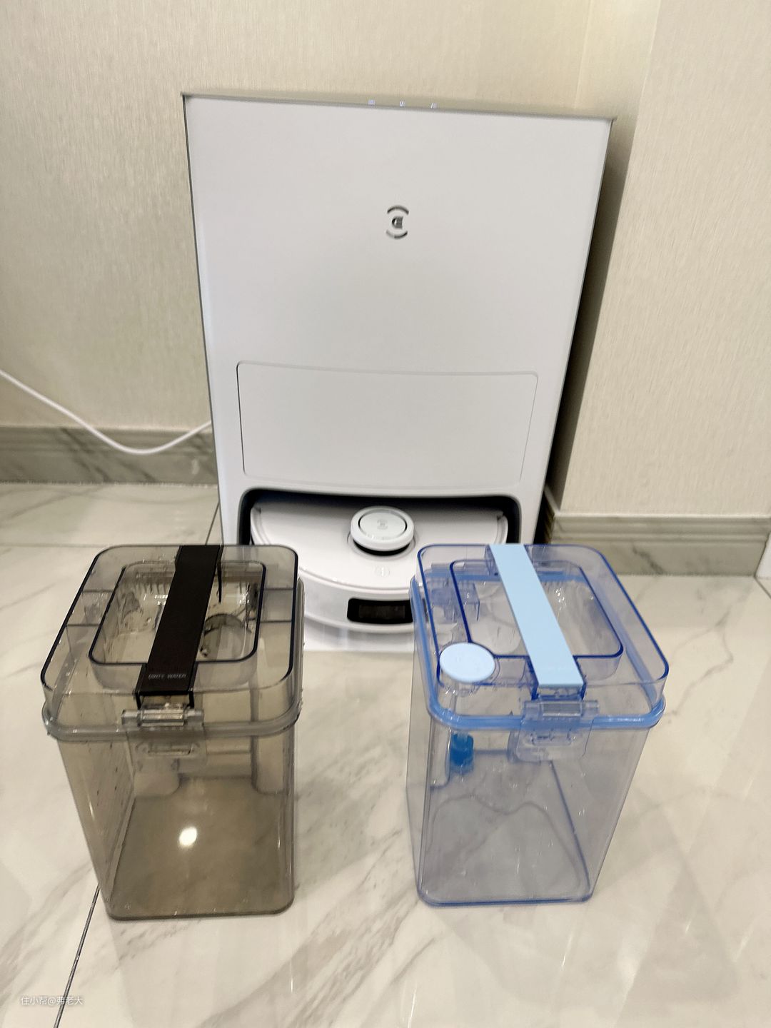 基站自带3h热风烘干功能,4.5L清水箱+4.05L污水箱提供了300㎡的湿拖续航。基站没有自动集尘功能,这就带来了常态化倾倒主机尘盒的繁琐。