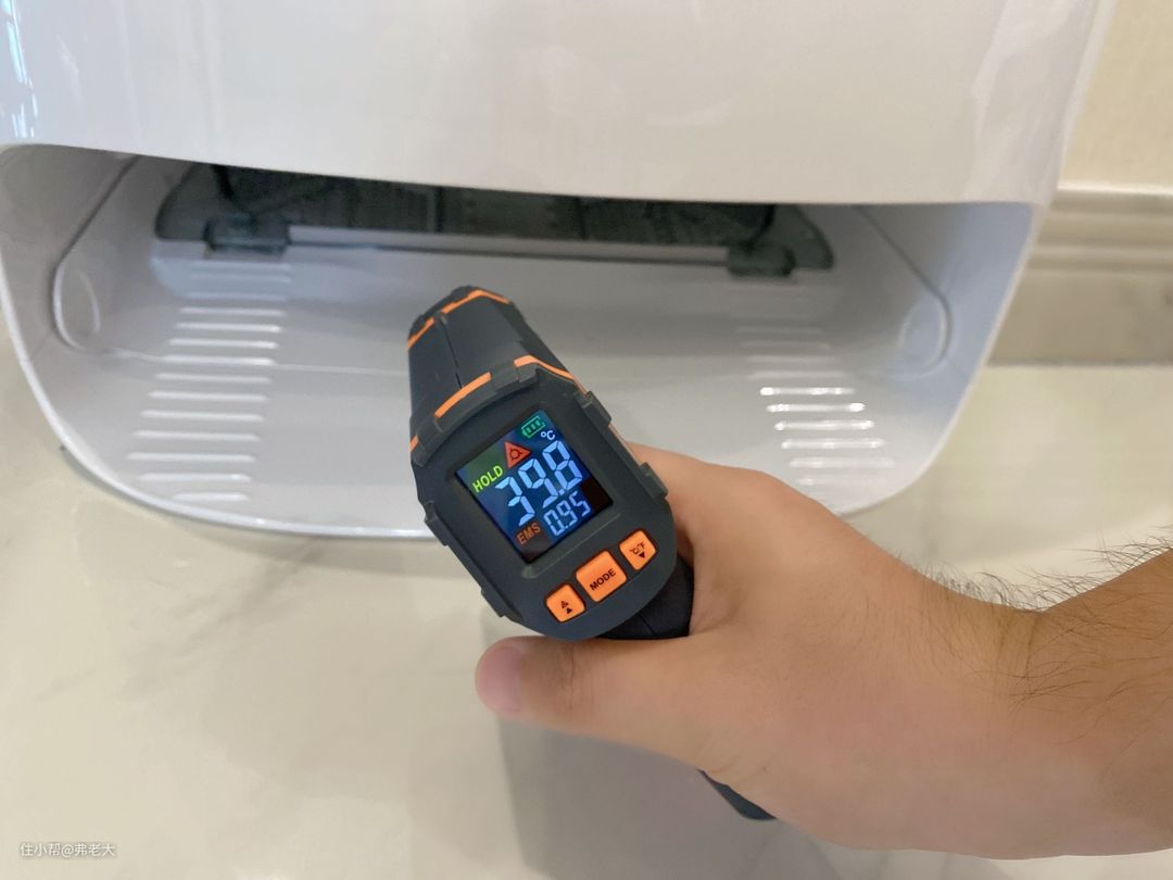 双风道密闭烘干方式,40℃立体热风直吹拖布盘,风道无折损,仅需2小时,就能将拖布、清洁槽、基站底通通烘干。虽然刚烘干之后的拖布确实温热,但是较真的楼主用测温仪一探究竟,40.9℃的测试结果让人信服。