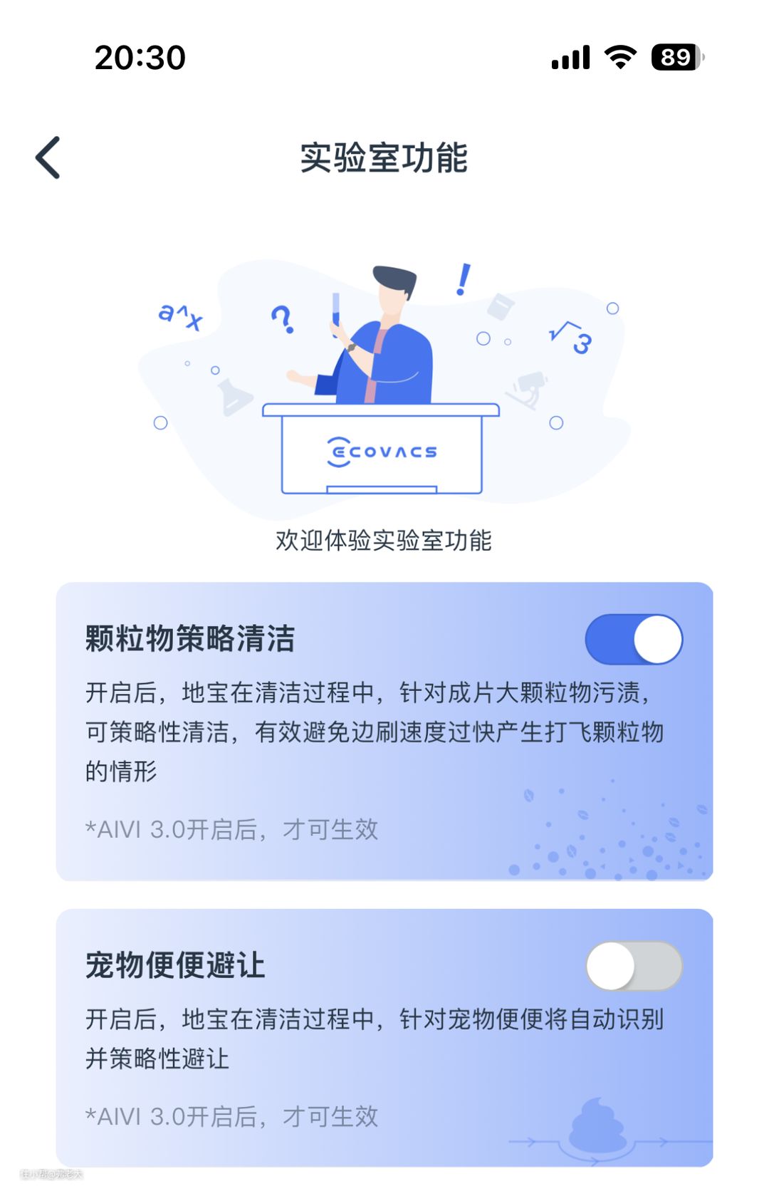 科沃斯T10 OMNI还有创新的颗粒物清扫功能。熊孩子在家常把大大小小的颗粒撒得遍地都是,可让一般机器人捉襟见肘,不是打飞了就是遇潮变成粘腻污渍。