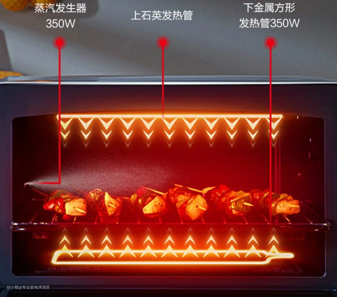它是用远红外短波来加热的,升温时间短,热转化效率高,做出来的食物口感外焦里嫩。普通烤箱做一些美食的时候菜谱上可能会让你提前预热,其实就是为了食物的口感更好,而这台烤箱的升温时间短,大大节省了预热时间,还能让食物口感提升。