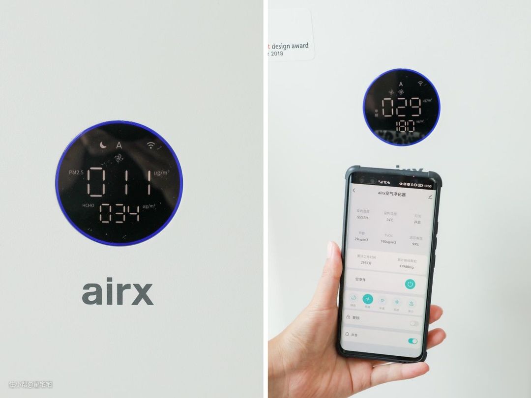 此外,airx A10操作比较简单,开机就是自动模式,哪个超标就净化哪个,不用手动调节,巨智能巨方便;高精度传感器,精准检测,实时数显,甲醛、PM2.5、TVOC、温度、湿度 5 大指标一目了然;还支持App远程智能操控,用着安心又舒心。