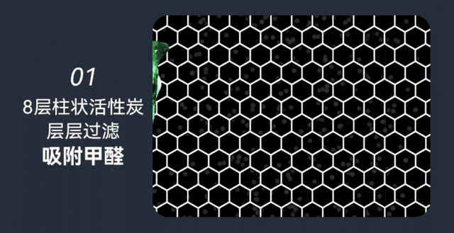其原装滤网在活性炭上添加有美国进口的HiSiv-锁醛瞬吸晶体,能主动吸附并锁住甲醛,并在CTOX催化剂的作用下,将甲醛分解为二氧化碳和水。
