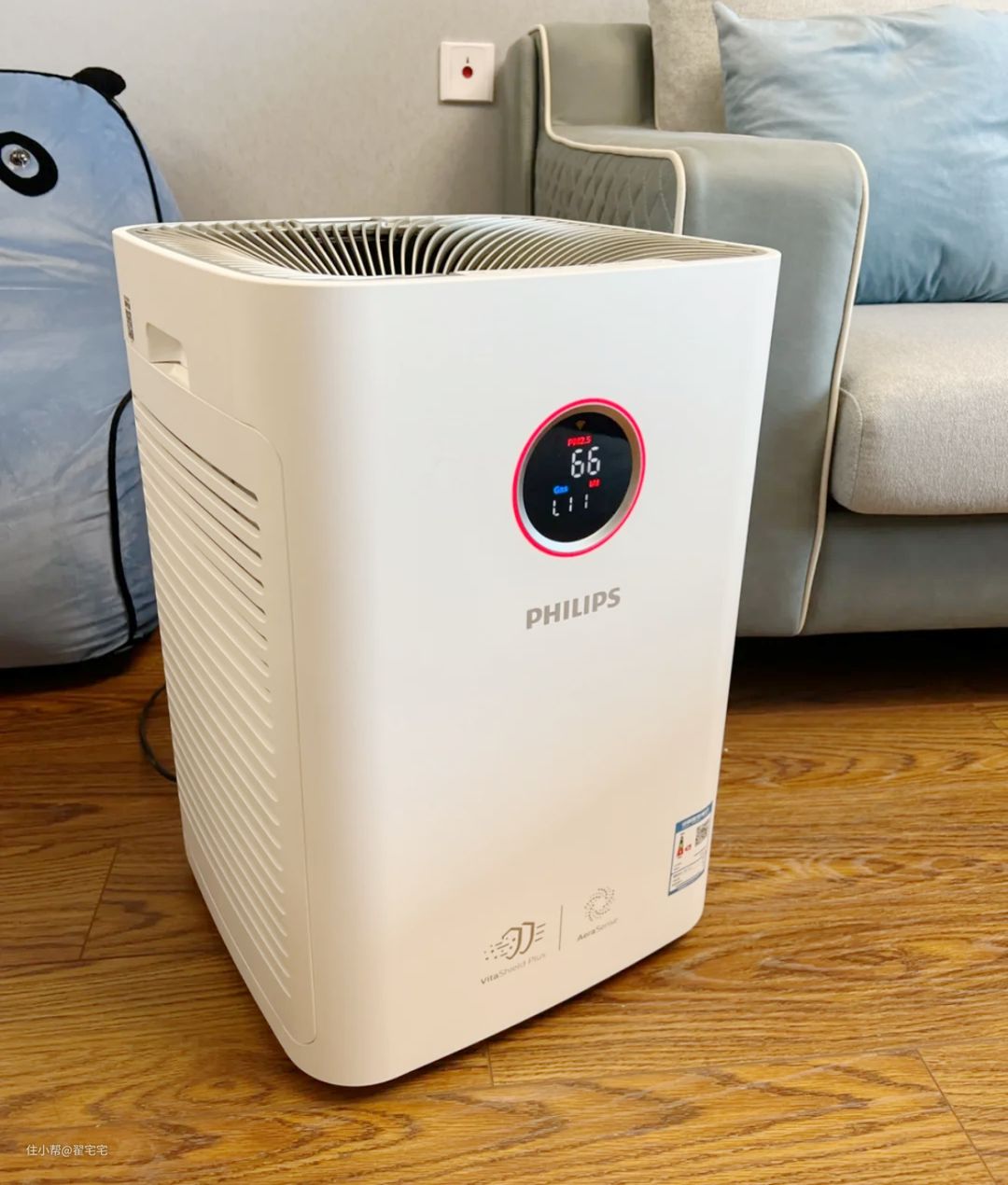 飞利浦AC6678/00空气净化器采用纳米级劲护滤网,搭载VitaShield微护盾技术,颗粒物CADR值高达720m³/h,除菌率99.9%,最快19分钟可去除空气中过敏源。