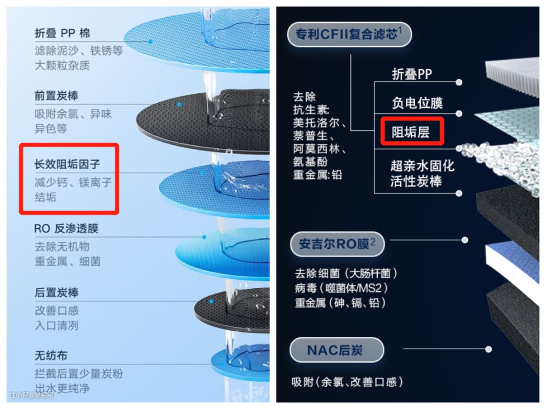 所以,很多商家会在净水器中加入阻垢材料阻止滤芯中水垢的形成,延长滤芯寿命,达到提高净水产水率,来满足国家严格的一级水效等级要求的目的。