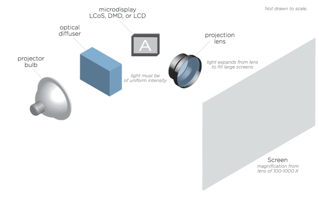 投影仪的工作原理其实是说起来是相当简单的,这里就简单的给大家做个小科普吧。投影仪其实就是利用我们熟知的“凸透镜成像”的原理,通过安装类似于凸透镜的镜头,然后投放视频的时候,先在显示元件成像后,在通过类似凸透镜投影成像。