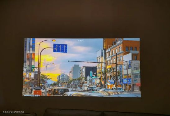 晚上关灯投影图,整体画质达到了更高水准,色彩的过渡更柔和,明暗细节更丰富,色彩更明艳,如同身临其境,画面的沉浸感更强!