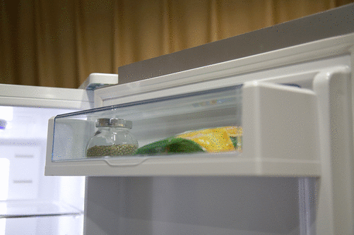 相比较上面的双门冰箱,这种冰箱在中间新加了一个保鲜层,温度调节多在0~4度,主要用来存放蔬菜和水果,比直接放在冷藏式的效果更好,相比较前两者而言,价格略高,但是功能更强,控温也更精准。