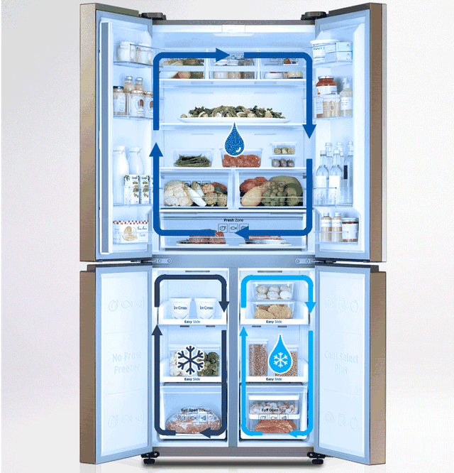 这种冰箱内部的存储空间非常大,多分为15~20个存储区,能够将需要冷藏的食物进行很好的分类,防止食物之间串味。