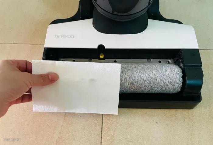 我尝试了一下把一张纸巾放在刚刚用离心速干方式干燥后的滚刷上,纸巾只有一点点湿的痕迹,不仔细看都看不出来。可见用离心速干方式干燥的滚刷干燥效果非常的出色,同时干燥时间也很短。