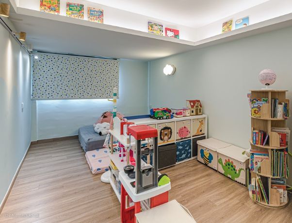当我们谈论主卧设计创意,现代化的儿童卧室创意也是必不可少的。这里有一个适合没有太多空间时使用的创意。这个创意将儿童的游戏室和他们的卧室结合在一起。它的设置是为了营造一个明亮的、视觉上刺激的房间,让孩子们喜欢。然而,床边区域的光线很暗,让你有一个愉快的体验和良好的睡眠。