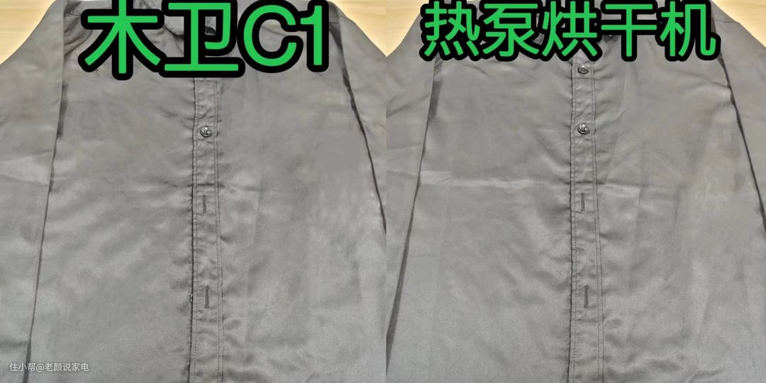 通过实际的测试,发现经由木卫或热泵烘干后的衬衫褶皱都比较少,细看的话,老颜认为木卫的褶皱痕迹更少,我认为这是由于其1:1正反转的技术优势造成的。