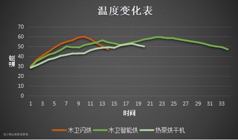 接下来再看看烘干温度上有什么不同,下图为三次烘干时的温度变化: