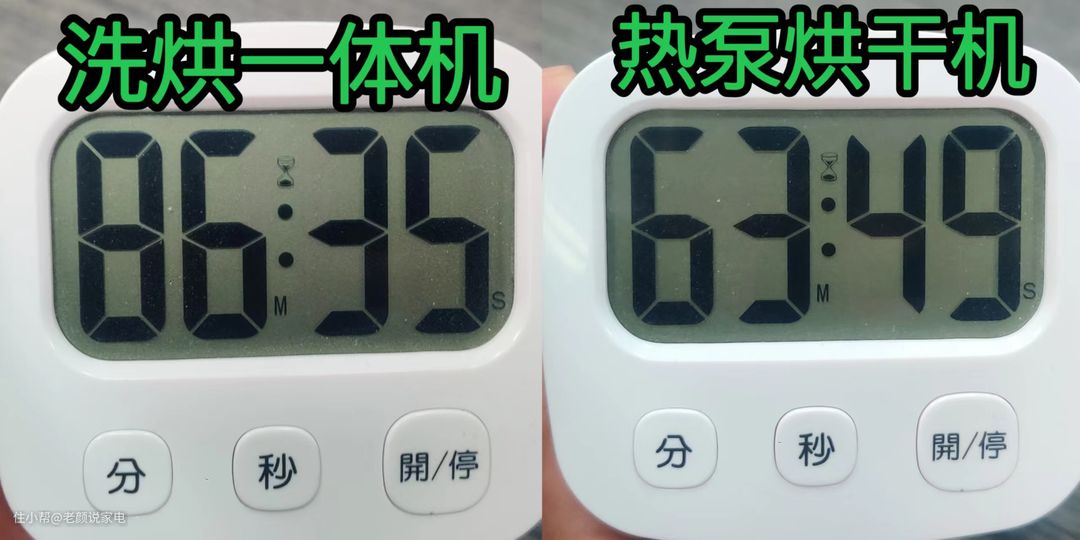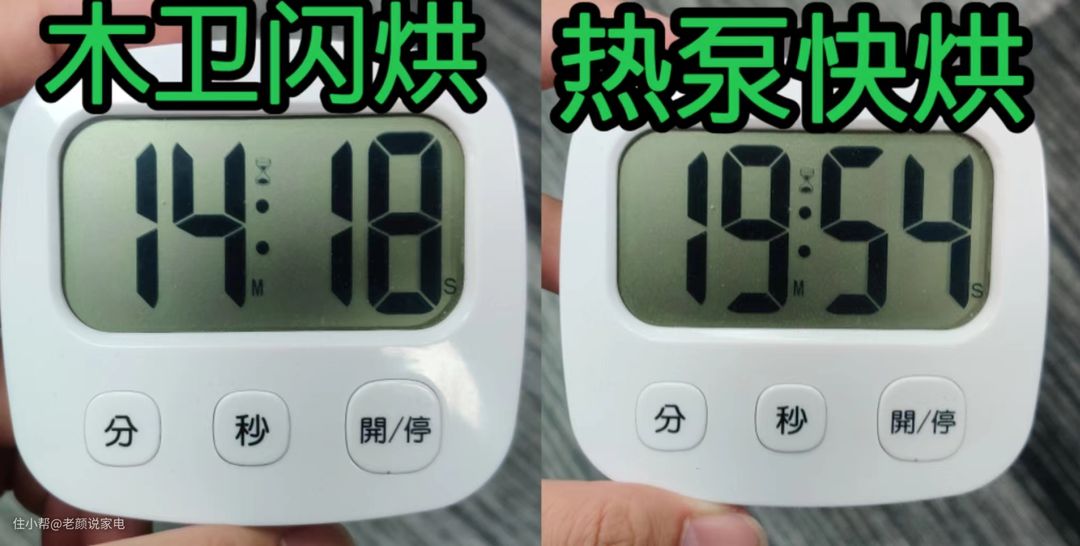 老颜在测试中顺带也将烘干时间记录了,下图为两者实际的烘干时长: