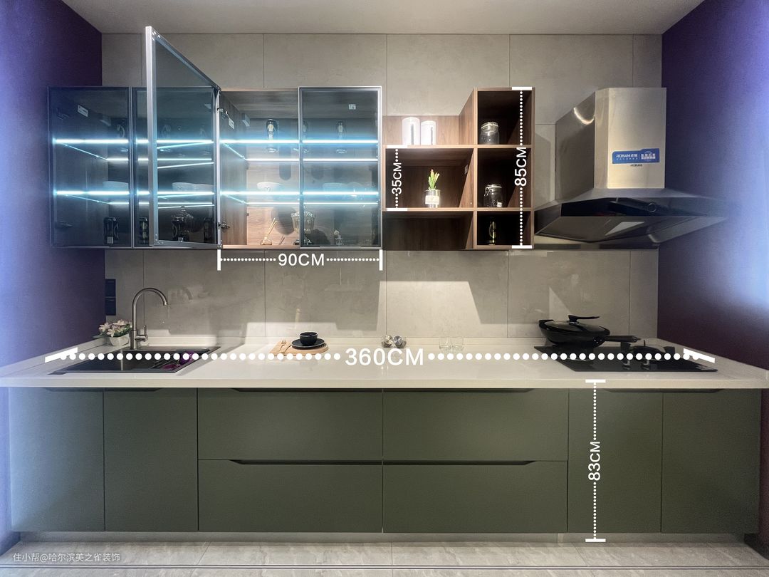 每家装修都离不开橱柜的设计,厨房橱柜选择的颜色很低调,本套案例选择的是莫兰迪色系。多功能的收纳空间(灶台360*830)增加了厨房的收纳空间合理的将整个区域合理划分,整体格局采用对开门上下抽屉拉篮等功能五金,高效的利用空间。