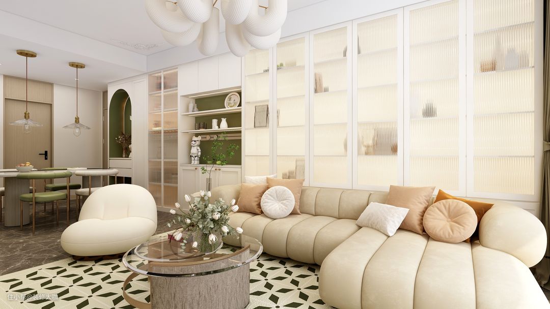 这里我们采用白绿黄来进行色彩搭配,有大量的弧形设计,当然其中的装饰起到氛围感足不足的问题,让小编带领大家走进简约风。