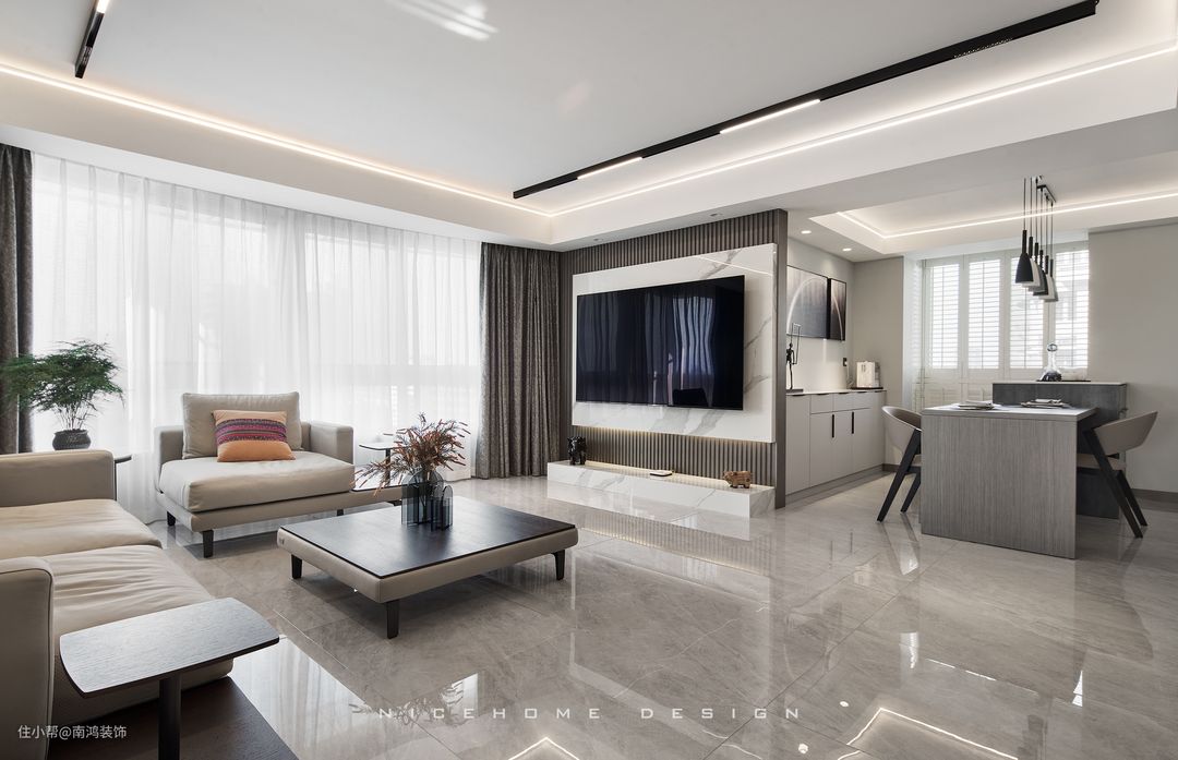 客厅可选择的材质有很多,如果想简单一点、不出错,布艺沙发可以配棉麻外观,皮质沙发可以搭高精密绒布或雪尼尔都可以。客厅就不建议加遮光衬了,因为没必要。