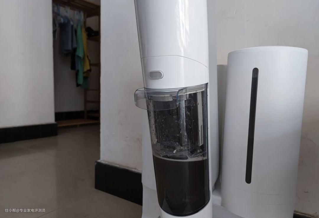 由于有段时间没拖地了,拖完客厅和卧室,污水箱满了。这款洗地机的污水箱具有干湿分离的功能,会把垃圾和污水分开存放。污水处理过程不予展示,只能说我地板真的很脏。
