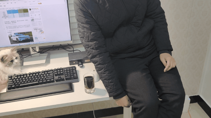 ▲双电机同时为北弧 T1带来了125kg的承重能力,本人大概80kg,算上桌面上所有东西至少得有90kg左右,我坐在桌面上操控上升时,旁边杯中的可乐依旧基本没有晃动,可见双电机的升降桌确实且相较于单电机升降桌升降时更加稳定。