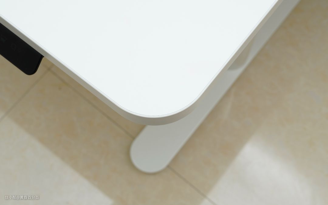 ▲说回桌子本身,北弧 T1采用了E0级别的板材,甲醛释放量低于0.1mg/L,完全无异味,且桌角采用了弧形防撞设计,未来孩子当学习桌用着我也更放心。