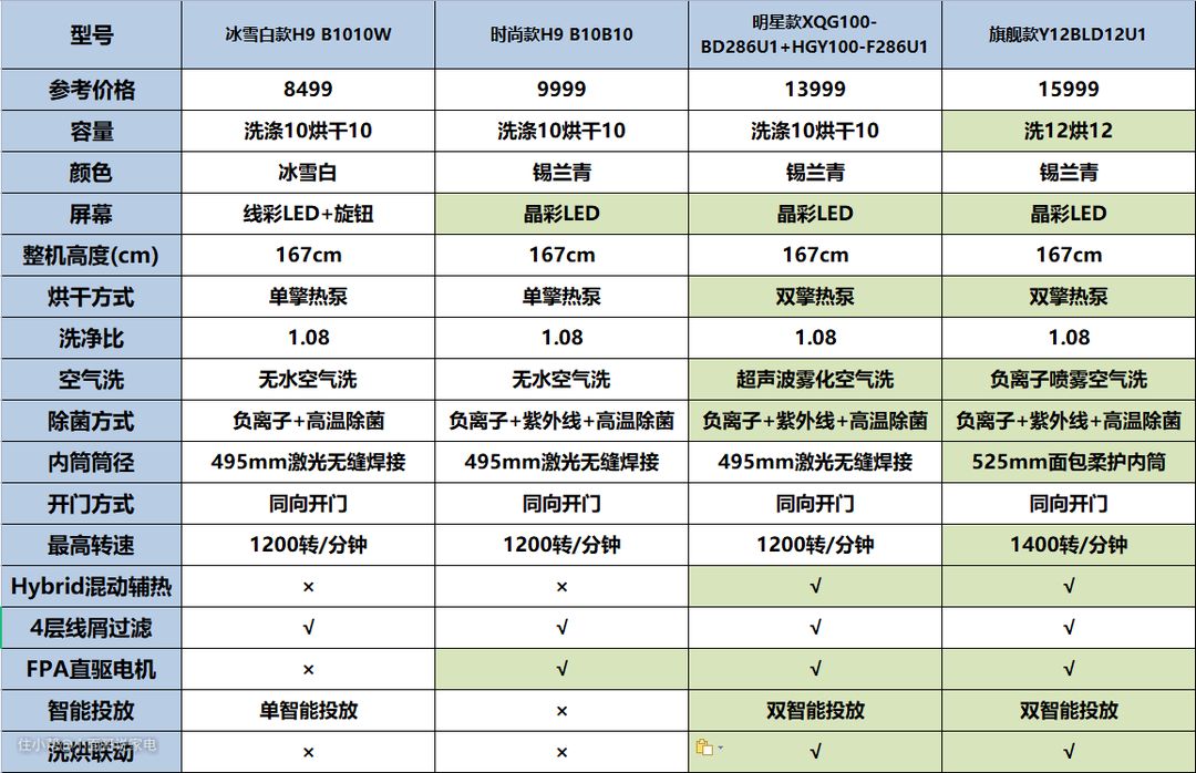 按照上面每个小节的优先顺序,再结合海尔洗烘套装的具体机型,基本可以分为以下四大类: