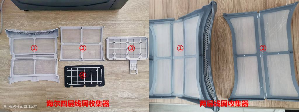 一般烘干机都是两层线屑过滤器,海尔烘干机最低起步三层,中高端都为四层。