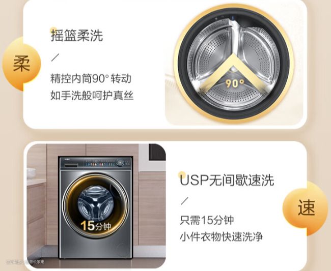 控制更精准,优势就是洗衣功能的多样化,比如:摇篮柔洗、USP无间歇洗、AI智慧洗等。