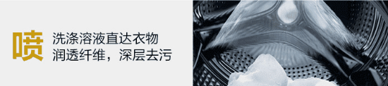 ③高压直喷:精华液通过上方高压喷淋口直接喷洒到衣服上,能够直接触达深层纤维,不需要完全浸泡衣服就可以有更好的去污效果。