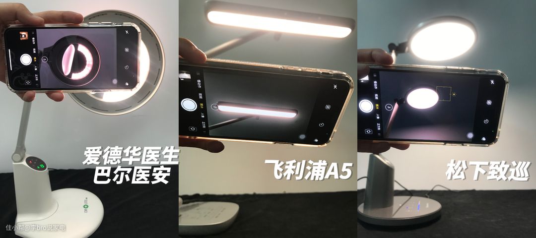 由于频闪我们肉眼无法察觉,所以本次采用了手机拍摄,同时保证每款台灯调到亮度最高模式,手机屏幕亮度固定,在没有使用闪光灯的情况下,所得出以上频闪的测试结果