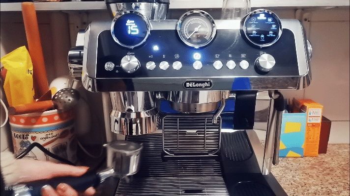相较于手工压粉的复杂流程,以及对于咖啡新手来说很难把控的力道问题及后续台面清理问题,德龙银骑士EC9865半自动咖啡机所具备的智能压粉技术可以说是相当便捷、高效了。在咖啡粉感应研磨过后,只需要拉下压粉控制杆即可完成压粉。