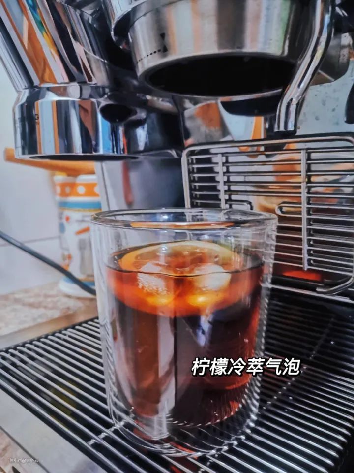 比如我前几天朋友来做客的时候,我就用它做基底,做了一杯柠檬冷萃气泡美式咖啡,看起来蛮不错的,味道也是很清爽。朋友尝了都说赞!