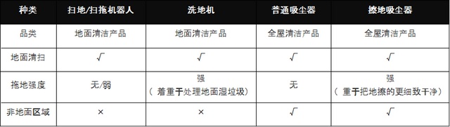 从清洁场景角度出发,擦地吸尘器和其他清洁工具对比,主要有以下不同↓↓