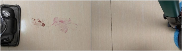 我平时用的最多的就是这个地刷,它是小狗自己研发的,前吸后擦的设计,前面的吸口先负责吸尽地面灰尘/毛发/垃圾,后面的清洁布则负责高速旋转强力湿擦地面,吸灰的同时地板也擦干净了,双管齐下,收获双倍快乐。而且不用弯腰、下蹲、用力,就能把很难擦掉的顽固污渍擦干净,打扫完还没有什么水渍,对地板非常友好,也不用担心孩子老人滑倒。