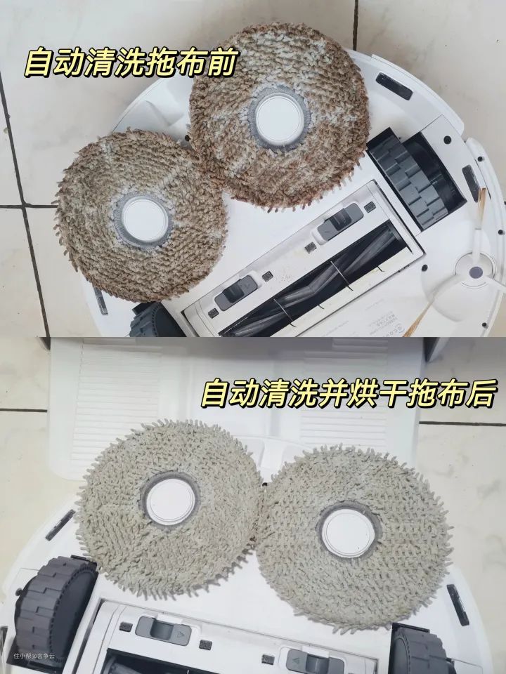 而科沃斯T10 OMNI则模拟了滚筒洗衣机的内部结构和原理,通过高速旋转+强力摩擦的方式清洗拖布,所以效率特别高,洗出来的拖布也非常干净!