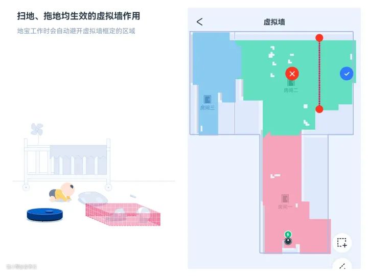你甚至可以通过画虚拟墙的方式,设置出自动避开的清洁区域!真的是非常贴心,非常智能了!