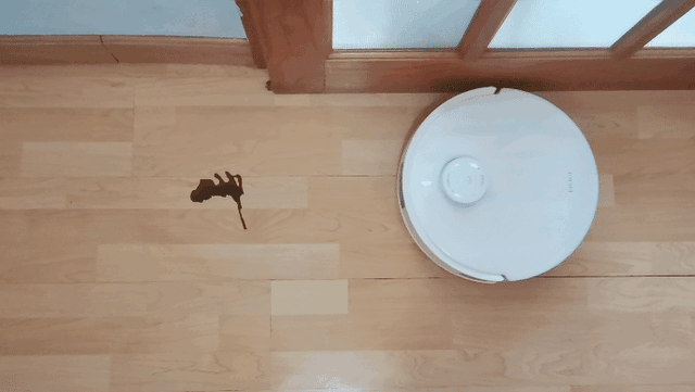 对于颜色浓重、平时自己手动拖地都要来回几次才能擦干净的酱油渍,科沃斯T10 OMNI的双加压旋转拖布竟然一次性拖干净了。