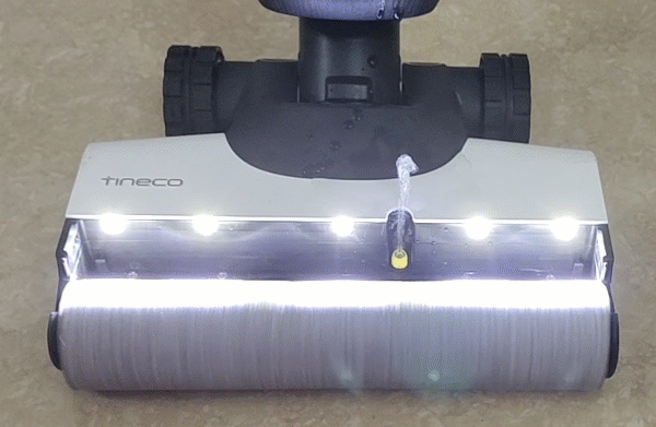 然后喷出来的水均匀分布打湿滚刷,开始清洁地面